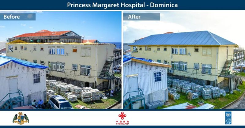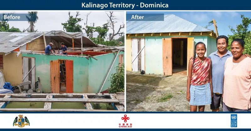 “援多米尼克飓风灾后屋顶修复项目”是在2017年9月18日多米尼克遭受超强飓风“玛丽亚”正面袭击10天后启动的紧急救灾项目。“玛丽亚”造成多米尼克90%以上房屋尤其是屋顶严重损毁。据UNDP提供的数据,该项目为多米尼克飓风灾后接受的规模最大的屋顶修复援助项目,共修复多米尼克唯一高等院校国立大学6栋教学和办公楼及2所小学、多米尼克唯一综合性医院玛格丽特公主医院5栋医疗和办公楼及5所社区卫生医疗中心、500多户贫困家庭房屋,直接受益人群5000多人、间接受益人群8000多人。该项目并帮助多方制定了适应超强飓风危害的“多米尼克住房安全标准指南”,通过在多米尼克全国范围内设立多个技术指导中心加强对民众更加安全住房标准的教育和指导,为多米尼克建设更美好家园作出重要贡献。