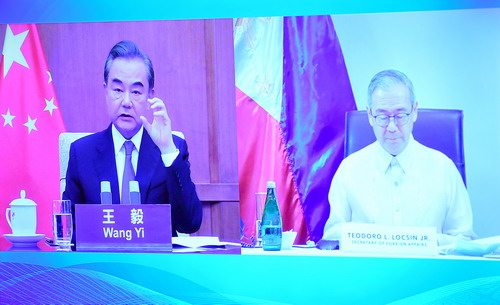 2020年7月14日,国务委员兼外长王毅同菲律宾外长洛钦举行视频会谈。