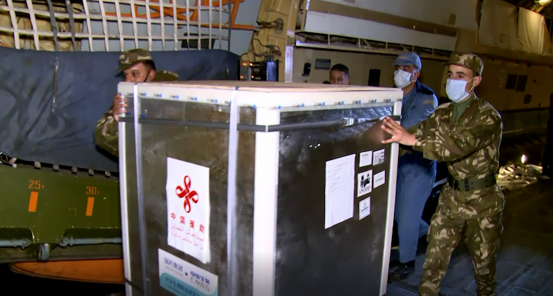 中国援助阿尔及利亚的一批国药集团新冠疫苗当地时间24日晚抵达阿尔及利亚布法里克军用机场。阿尔及利亚新闻部长奥马尔·贝勒赫莫尔(belhimer ammar)、卫生部长阿卜杜拉赫曼·本布齐德(abderrahmane benbouzid)及中国驻阿大使李连和等出席了在机场举行的疫苗交接仪式。