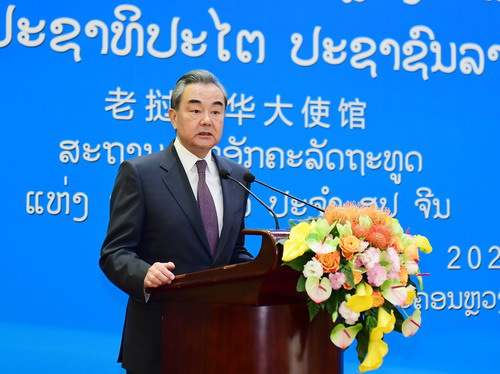 2021年4月21日,国务委员兼外长王毅出席中国人民对外友好协会与老挝驻华使馆共同举办的庆祝中老建交60周年招待会并发表致辞。