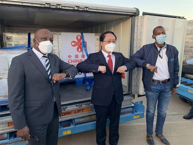 2021年4月25日,中国政府援助博茨瓦纳的新冠疫苗运抵博首都哈博罗内。博茨瓦纳总统事务部长莫尔瓦恩、国际事务与合作部长夸佩、卫生与健康部长迪科洛蒂和中国驻博茨瓦纳大使王雪峰赴机场迎接并出席疫苗交接仪式。