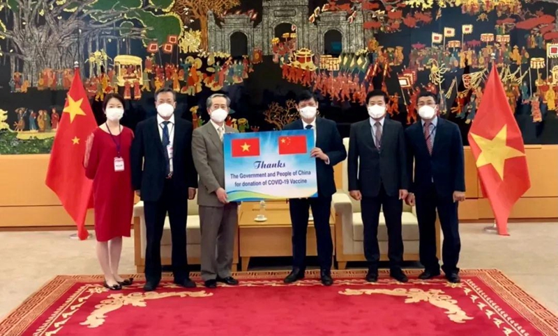 6月20日下午,中国政府援助越南新冠疫苗运抵河内内排机场。驻越南大使熊波大使向越南卫生部部长阮青龙正式移交疫苗,双方分别致辞并就加强抗疫合作交换意见。驻越南使馆经商公参胡锁锦、政务参赞陈虹及越共中央对外部副部长阮孟强、外交部副部长阮明羽等参加。