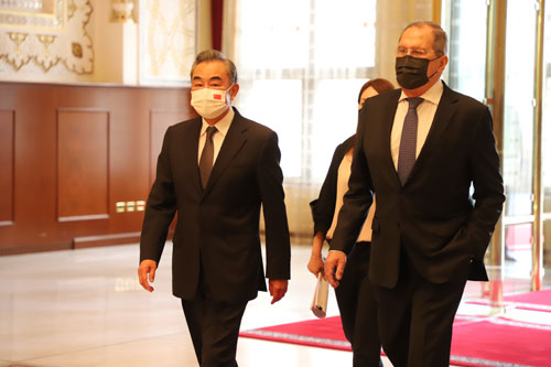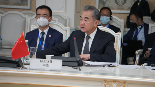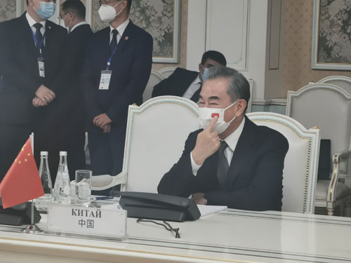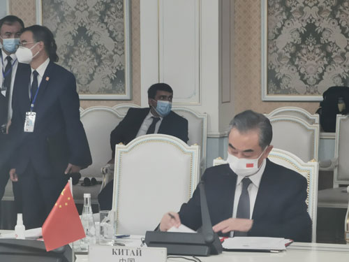 当地时间2021年7月14日,国务委员兼外长王毅在杜尚别出席上海合作组织成员国外长理事会会议。