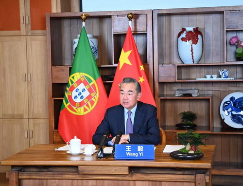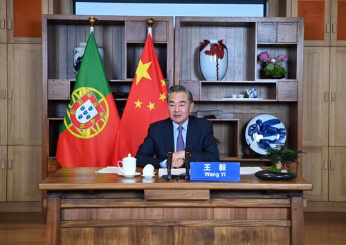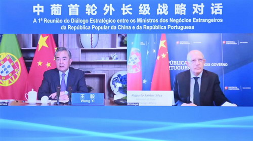 2021年7月22日,国务委员兼外长王毅在成都同葡萄牙国务部长兼外长席尔瓦以视频方式举行中葡首轮外长级战略对话。