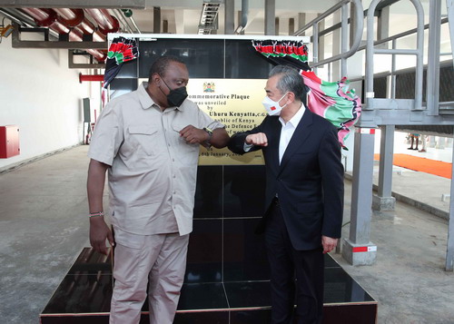 会谈后,王毅应邀同肯雅塔共同出席中方承建的蒙巴萨油码头竣工仪式。