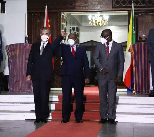 王毅说,中非合作论坛是中非加强团结合作最重要的平台。前不久,总统阁下出席论坛第八届部长级会议开幕式并代表东部非洲发言,为会议成功作出积极贡献。中方支持科方用好作为非盟和阿盟双料成员的优势,充分发挥中科友好、中阿和中非合作论坛的三大引擎驱动作用,为科摩罗发展振兴增添更多助力。