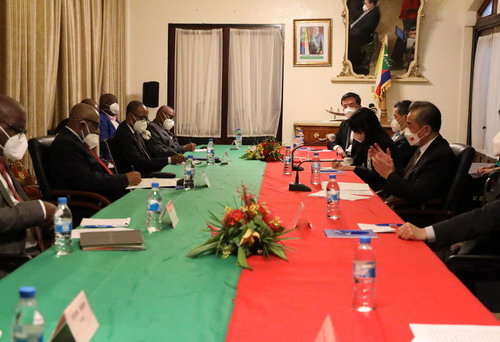 当地时间2022年1月6日,科摩罗总统阿扎利在莫罗尼会见应邀访科的国务委员兼外长王毅。