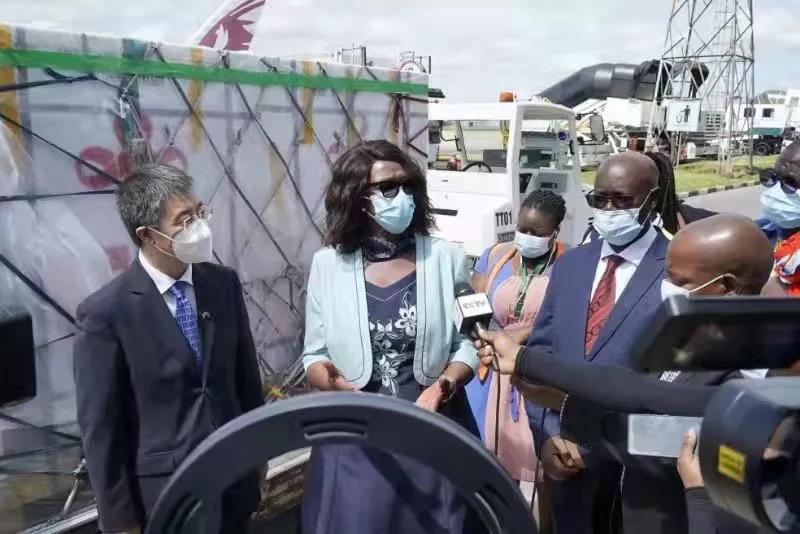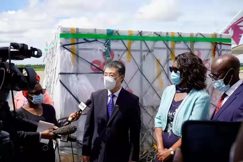 1月24日上午,驻赞比亚大使李杰、赞卫生部部长西尔维亚·马赛博一起赴卢萨卡肯尼思·卡翁达国际机场,共同见证中国援助赞比亚第二批中国生物新冠疫苗中的第一批次40万剂次疫苗到达赞比亚。双方在机场举行了短暂而热烈的迎接仪式。