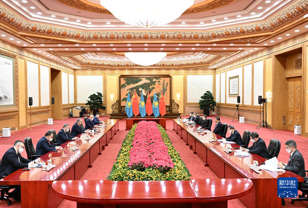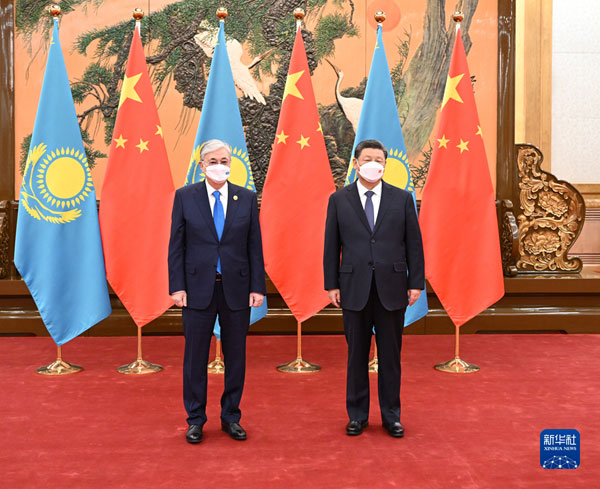 2022年2月5日上午,国家主席习近平在人民大会堂会见来华出席北京2022年冬奥会开幕式的哈萨克斯坦总统托卡耶夫。