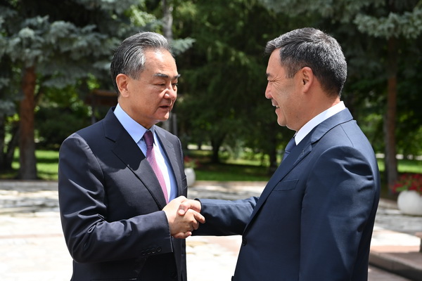 当地时间2022年7月30日,吉尔吉斯斯坦总统扎帕罗夫在乔蓬阿塔会见国务委员兼外长王毅。