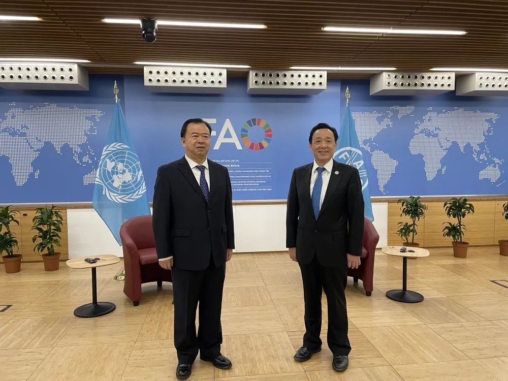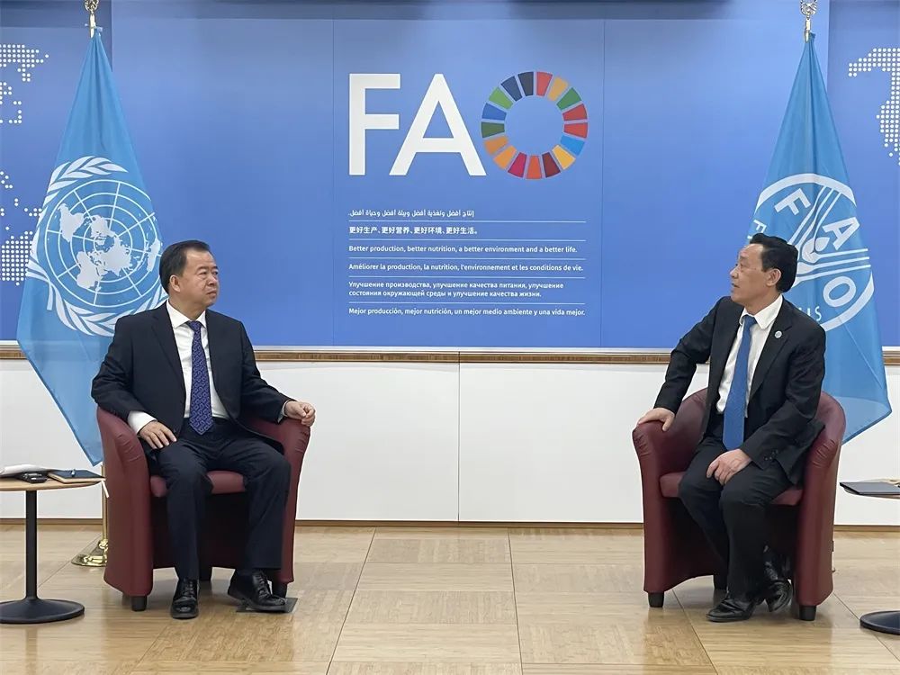 当地时间2023年2月16日,国家国际发展合作署副署长赵峰涛在意大利访问期间,会见联合国粮农组织总干事屈冬玉。