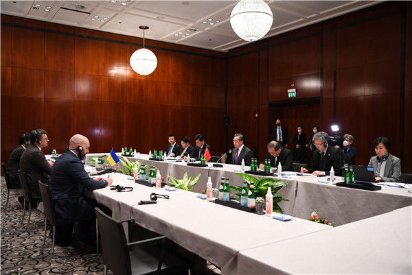 王毅表示,中国和乌克兰是战略伙伴,两国人民有着长久友好交往。我们再次感谢乌方在紧急状况下协助中方顺利开展撤侨行动。赞赏乌方始终坚持一个中国原则。希望两国关系继续稳定发展。在乌克兰问题上,中方始终站在和平一边、站在对话一边,始终坚持劝和促谈。我们不愿看到乌克兰危机长期化、扩大化,愿同国际社会一道,避免形势进一步恶化,持之以恒地争取和平。