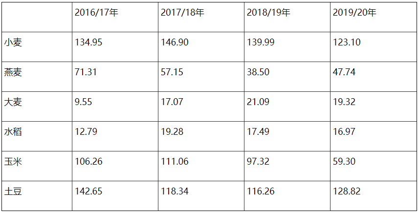 【农林牧渔业】 农业:近年来主要农产品产量如下(单位:万吨):