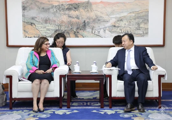 2023年6月26日,国家国际发展合作署副署长赵峰涛会见来访的洛克菲勒基金会亚洲地区负责人迪帕莉·卡娜。全球发展促进中心主任汤瑛、洛克菲勒基金会亚洲事务总监埃里克·阿恩特等参加。双方重点围绕在气候变化领域探讨合作进行了充分交流。