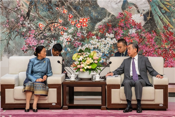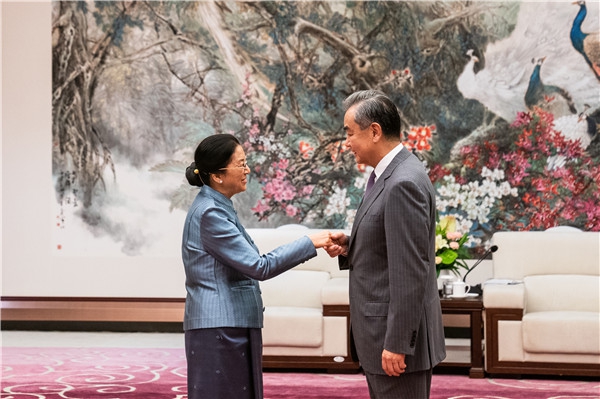 2023年8月16日,中共中央政治局委员、中央外办主任王毅在昆明应约会见来华参加中国一南亚博览会的老挝国家副主席巴妮。