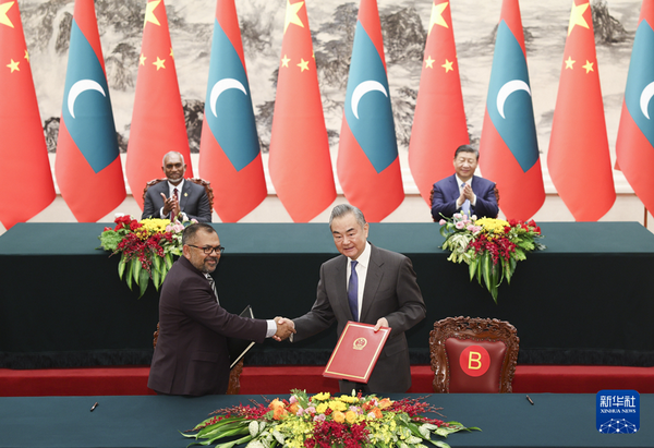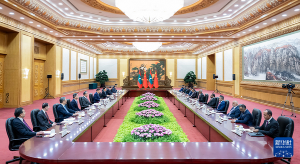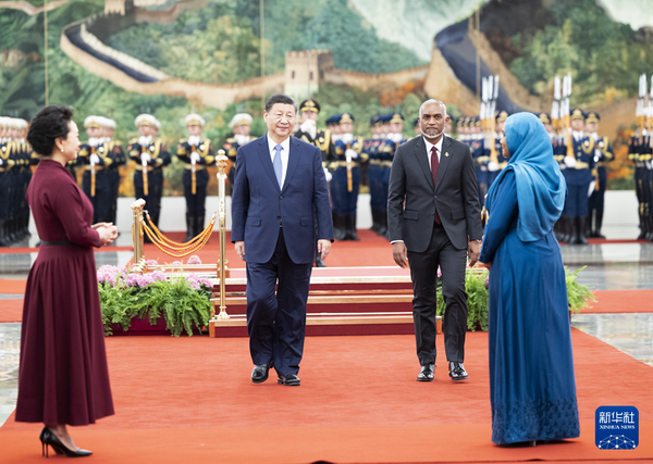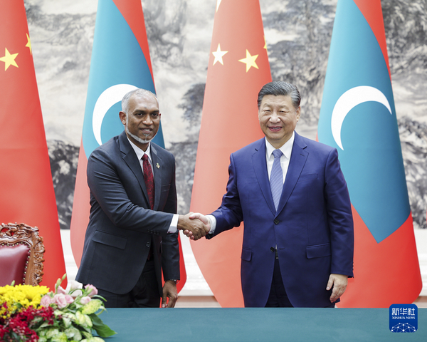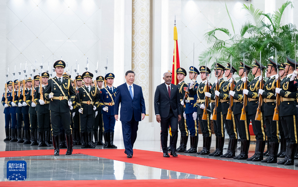 2024年1月10日下午,国家主席习近平在人民大会堂同来华进行国事访问的马尔代夫总统穆伊兹举行会谈。两国元首宣布,将中马关系提升为全面战略合作伙伴关系。