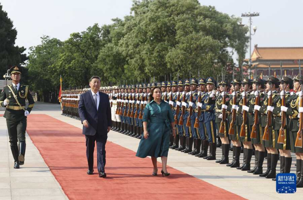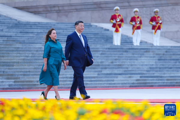 会谈前,习近平在人民大会堂东门外广场为博鲁阿尔特举行欢迎仪式。