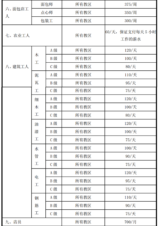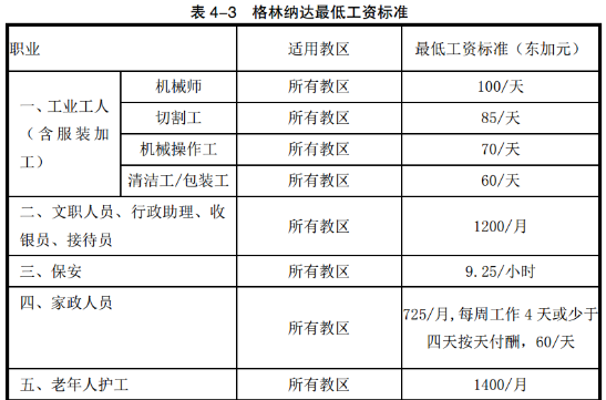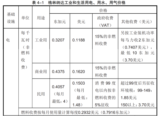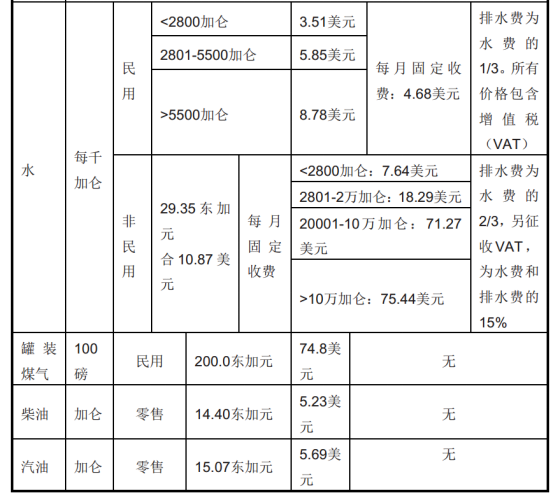 格林纳达电、水、煤气、柴油、汽油等价格及最低工资标准详见下表。