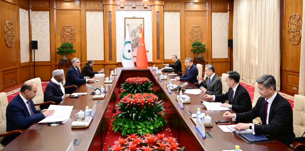 2026年1月26日,中共中央政治局委员、外交部长王毅在北京同伊斯兰合作组织秘书长塔哈会谈。