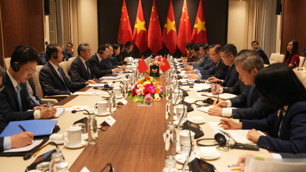 王毅表示,一年之计在于春,中方在中国全国两会结束后第一时间访越,体现了中越关系的高水平。今年1月越共十四大召开后,习近平总书记、国家主席同苏林总书记及时通话,一致同意要开好中越外交、国防、公安“3+3”战略对话机制首次部长级会议和双边合作指导委员会第十七次会议。遵照两党最高领导人战略共识,我们应通过这两个重要机制会议,深入探讨统筹发展与安全两件大事,明确走好社会主义道路的重要举措,向国际社会发出中越团结互信、携手前行的积极信号。