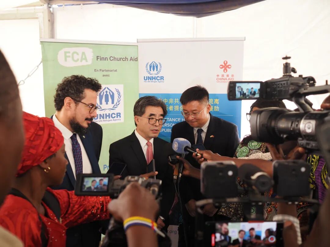 中国驻中非共和国大使李钦峰接受媒体采访,强调了这一项目以及中国、中非共和国和联合国难民署三方协作的重要性。© UNHCR/ Ying Hu