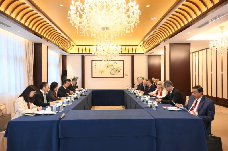 2026年4月22日,国家国际发展合作署副署长赵峰涛集体会见联合国助理秘书长兼儿童基金会副执行主任范德海登、联合国工业发展组织副总干事邹刺勇、国际原子能机构副总干事刘华、红十字会与红新月会国际联合会副秘书长斯托伊科维奇、新开发银行副行长兰詹、亚洲基础设施投资银行首席伙伴合作官金宪。
