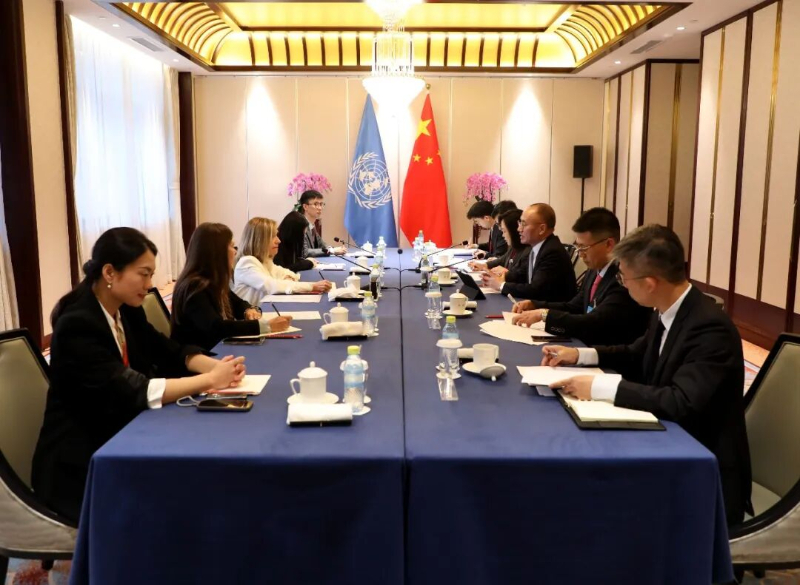 2026年4月22日,国家国际发展合作署署长陈晓东会见来华参加全球共享发展行动论坛第三届高级别会议的世界气象组织秘书长席列斯特·绍罗。