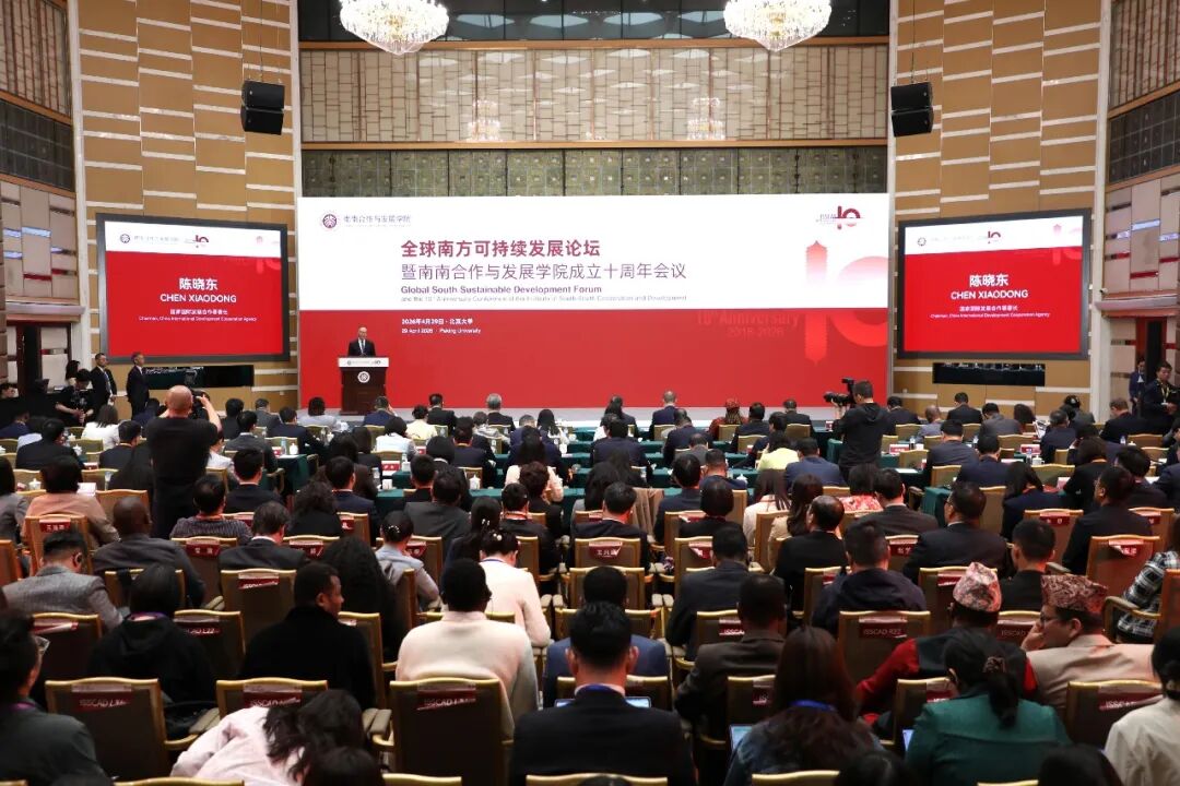 2026年4月29日,全球南方可持续发展论坛暨南南合作与发展学院成立十周年会议在北京大学举行。国家国际发展合作署署长陈晓东出席并致辞。